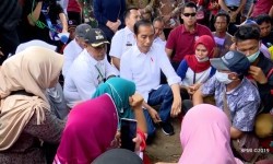 Presiden Jokowi saat menemui warga terdampak tsunami di Lampung Selatan.