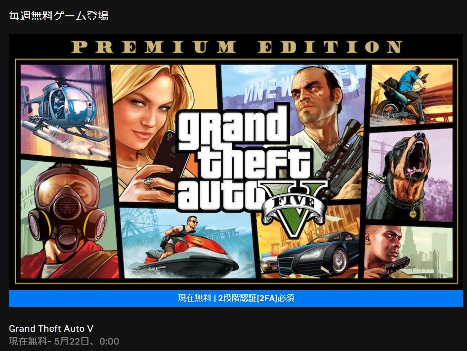 Epic Gamesストアの週替り無料ゲーム、大人気でサーバを落とした『グランド・セフト・オートV』、GTA5無料は日本時間で本日21日までです(22日0時終了)。