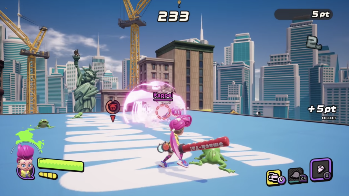 ニンジャラは「ニンジャガム」というアイテムを駆使して対戦するアクションゲームです。武器はカタナ、ハンマー、ヨーヨーの3タイプ12種類から選択でき、豊富な選択肢からキャラクターカスタマイズを楽しめるとしています。オンライン対戦アクションでは最大8人でのバトルロイヤルや4人vs4人のチームバトルなどを用意。オンライン対戦は「Nintendo Switch Online」への加入は不要です。